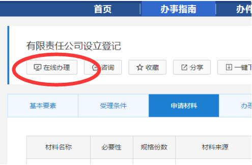 4、進入后可以登錄并點擊“在線辦理”也可以查看流程和條件。